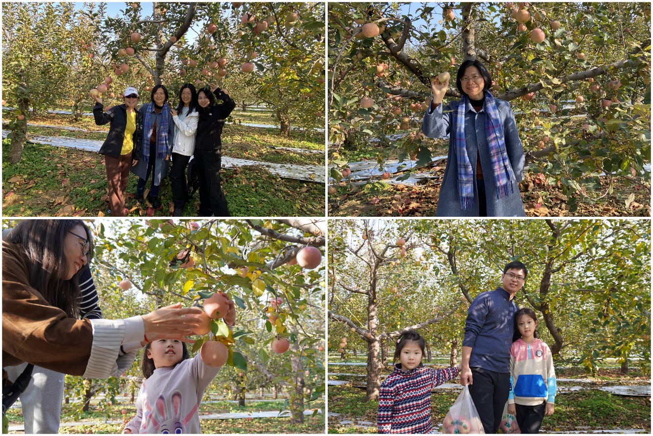 参观完长城,学院工会组织老师们来到苹果采摘园。苹果树上挂满了红彤彤的果实,散发着诱人的香气。大家三五成群,穿梭在果树之间,挑选着自己心仪的苹果,一会功夫就满载而归。在阳光的照射下老师和孩子们红扑扑的脸袋儿像极了红彤彤的苹果。