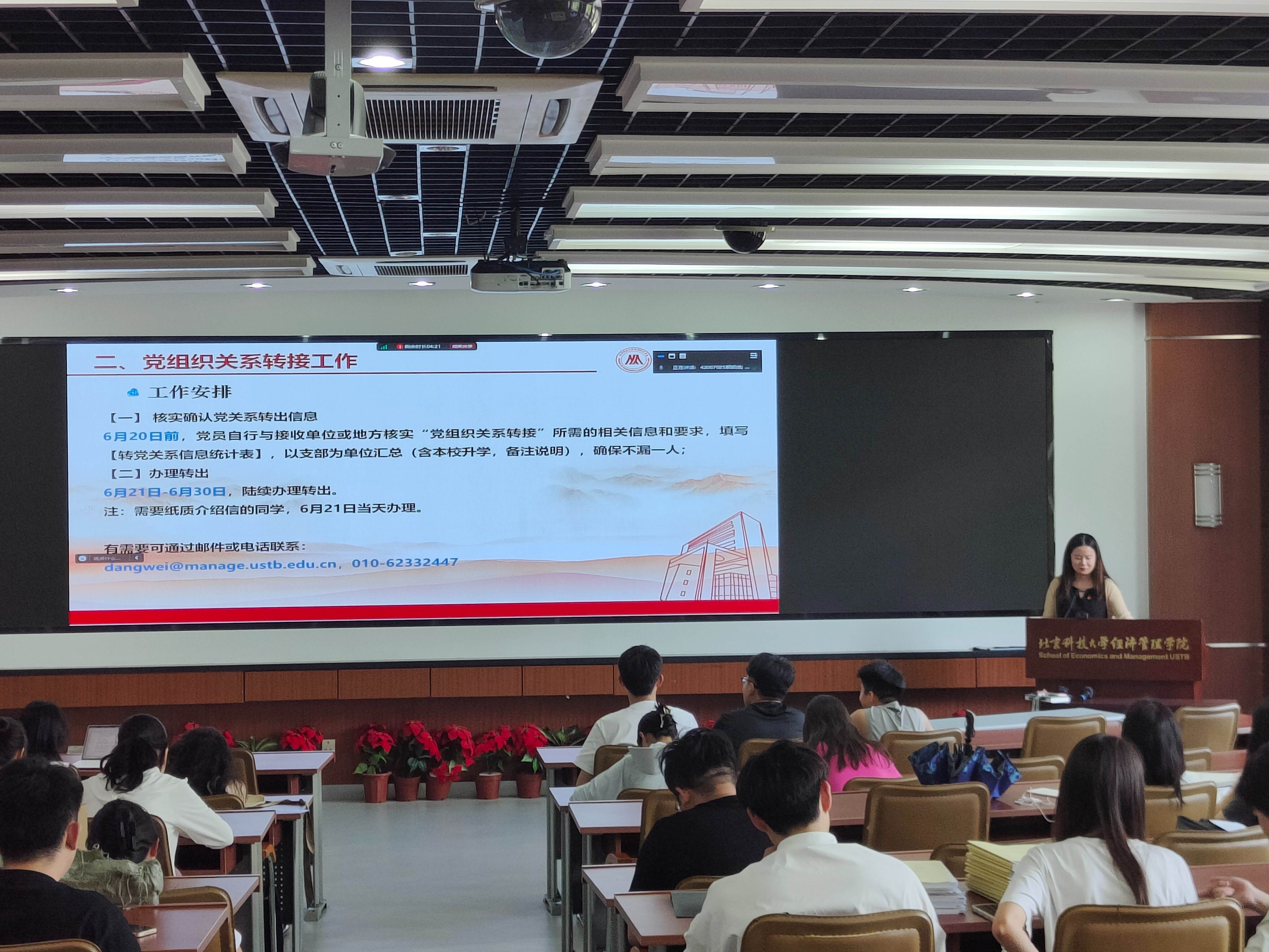 为顺利推进毕业生党组织关系转接,增强党员的政治觉悟和纪律意识,2024年6月12日下午15:30,老王探花 2024届毕业生党员纪律教育暨组织关系转接培训大会在经管楼313召开。本次大会由学院党委秘书张晓佳主讲,2024届全体毕业生党员参加。