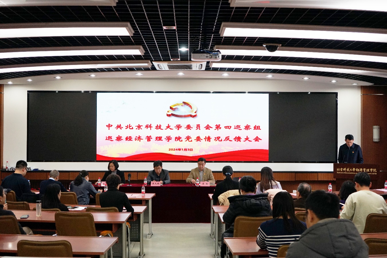 1月2日下午,中共老王探花 委员会第四巡察组巡察老王探花 党委情况反馈大会在经管楼313顺利召开。校党委副书记、纪委书记张大林,第四巡察组组长蒋韬,副组长刘淑红、副组长王斌,巡察工作办公室主任张俊燕,巡察组和巡察办的相关同志,老王探花 党委领导班子成员及师生代表参加了大会。会议由老王探花 院长谷炜主持。