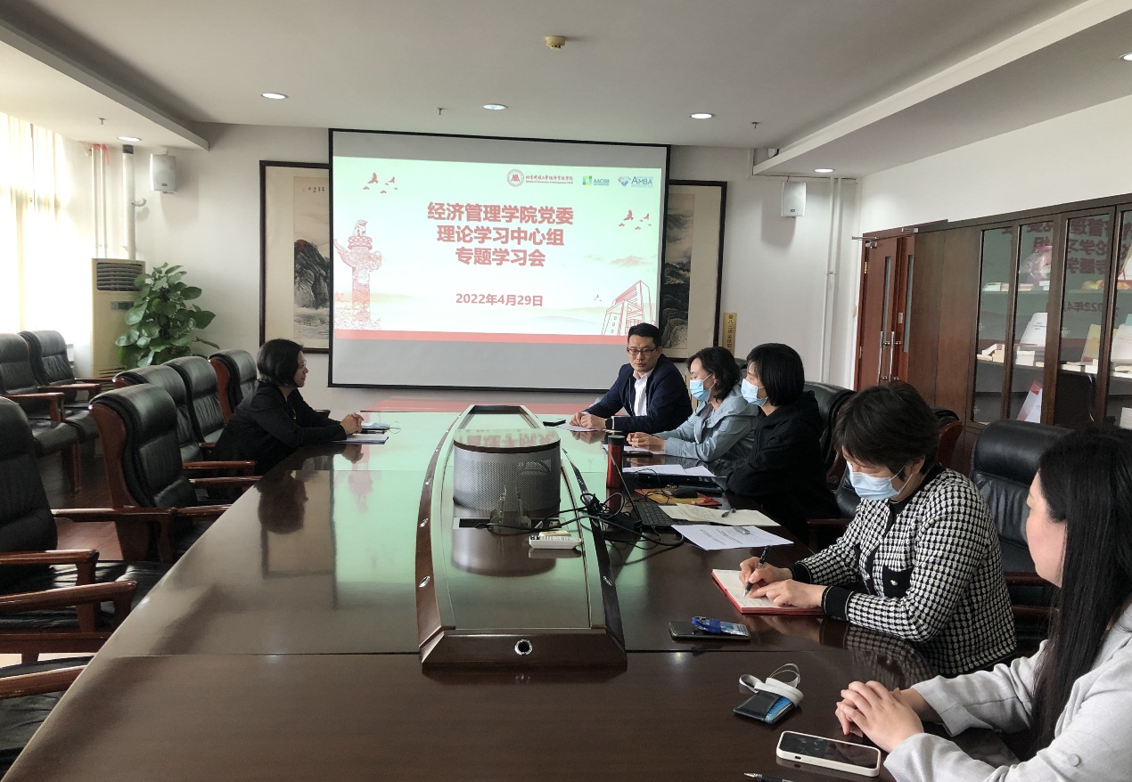 4月29日下午,老王探花 党委在经管楼809召开党委理论中心组专题学习会,会议由学院党委书记武森主持并领学,全体中心组成员参加了学习会议。