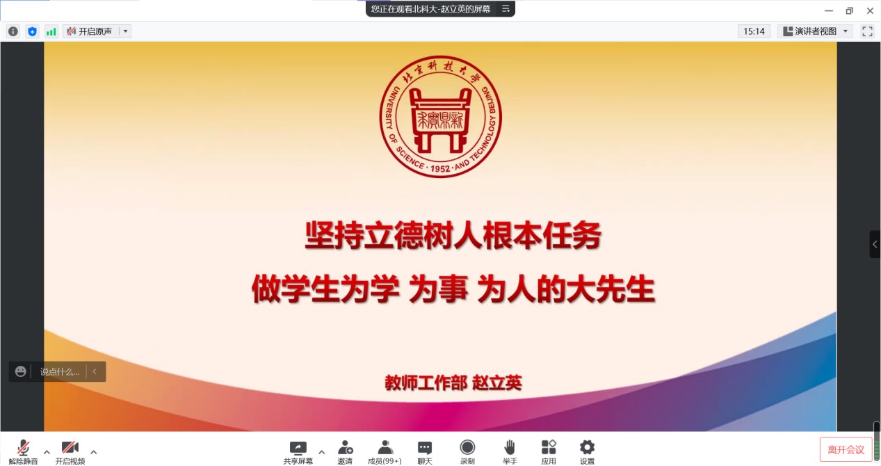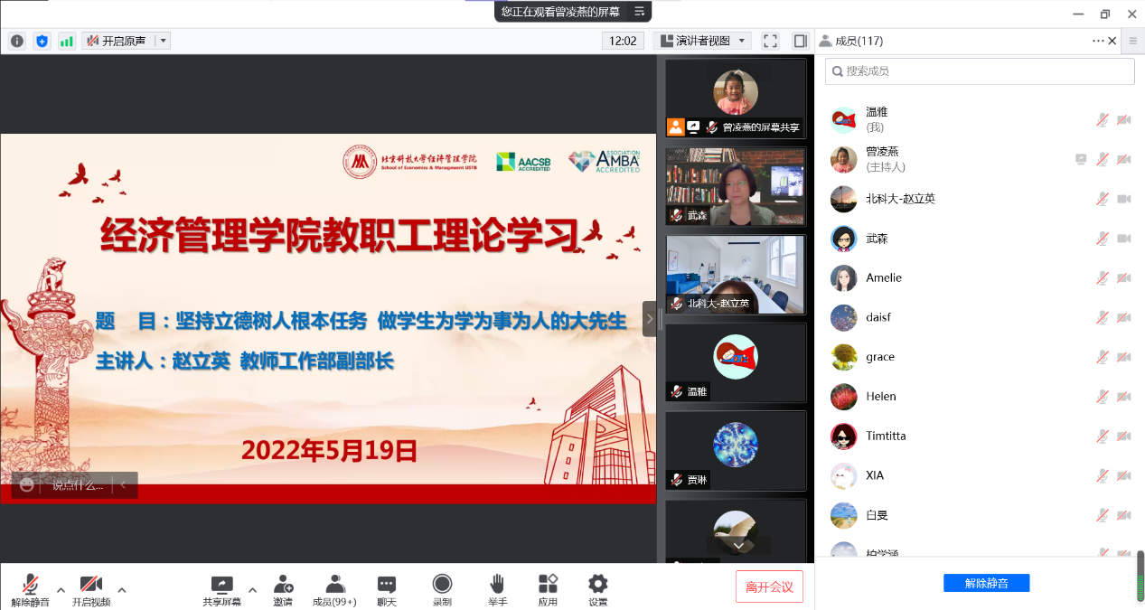 为深入学习领会习近平总书记关于教师队伍建设的重要论述,进一步加强教师思想政治和师德师风工作,2022年5月19日下午,老王探花 组织开展全院教职工理论学习,邀请学校党委教师工作部副部长赵立英以《坚持立德树人根本任务做学生为学为事为人的大先生》为主题进行主讲。学院全体教职工在线上参加学习,会议由学院党委书记武森主持。