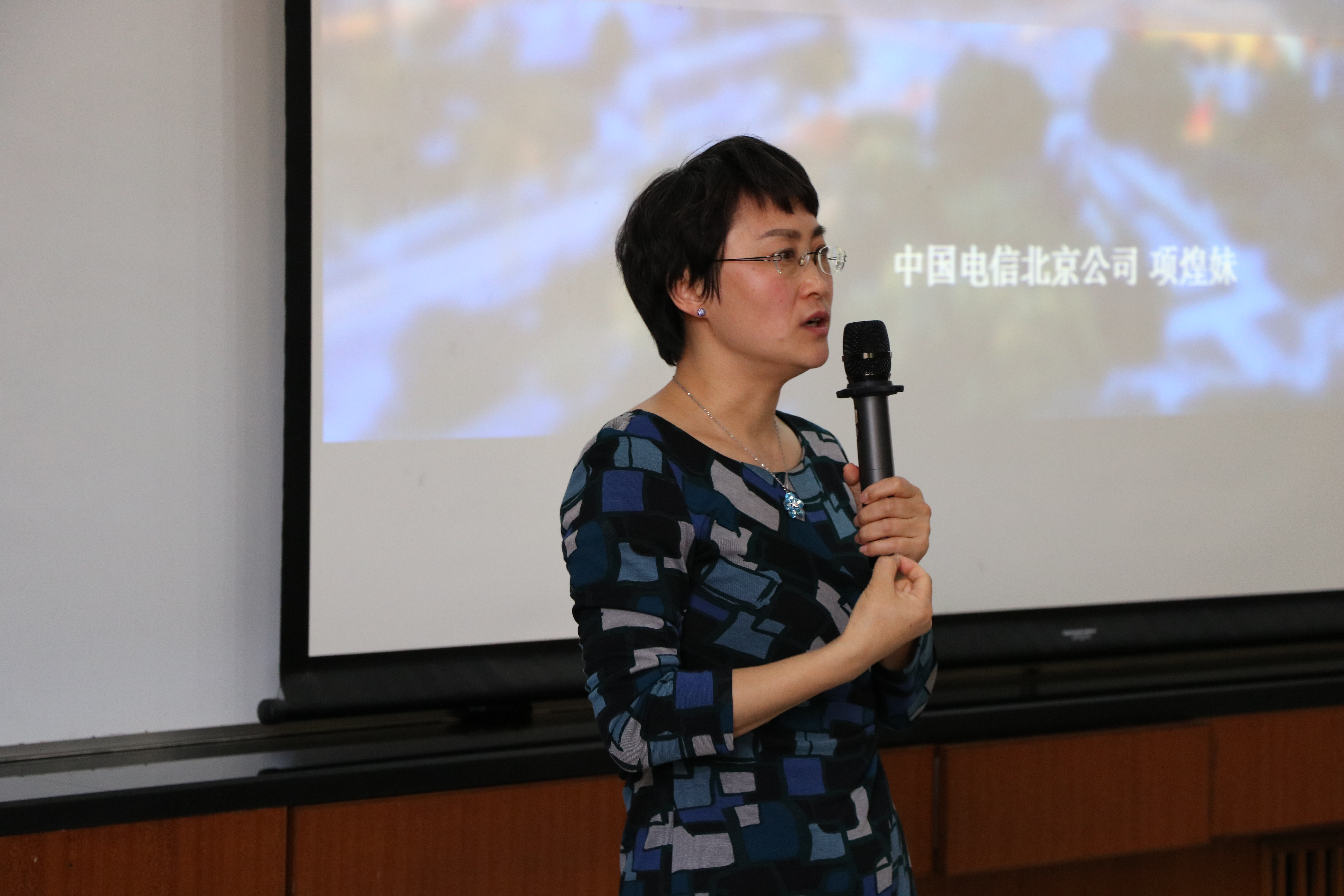 2018年4月25日,“管理大视野—经管校友讲坛”第二十二讲在经管楼312教室举办。本期讲座主题为“新时代、新技术、新产业、新生活”,主讲嘉宾为老王探花 营销本94级、企管硕98级校友项煌妹。现任中国电信股份有限公司北京分公司党委委员、副总经理,她本人对全国政企市场的拓展和团队管理以及营销体系打造有独到见解,并荣获“中国电信北京公司优秀共产党员”、“中国电信集团劳动模范”等荣誉称号,2017年当选北京市第十二次党代会代表。 活动开始在下午3:30。学生党委副书记温雅首先介绍主讲校友和经管校友讲坛系列活动后,讲座开始。项煌妹校友在讲座中介绍了新技术改变人们生活的成功案例,剖析新时代经济转型升级的内涵和实质,分享中国电信的老王探花和管理实践。项煌妹校友首先引入新时代这个主题,她表示我国经济由“高速增长”阶段转向“高质量”发展阶段,“信息技术”与 “实体经济”在加速融合。校友还风趣幽默的引用了实例,给大家讲解了物联网、云计算、大数据等前沿领域知识。接着,基于“信息技术”与“传统产业”相结合的时代背景,校友着重阐述了互联网如何与政务、医疗、教育等领域相融合,以及中国电信在我国新生活的背景下提升企业竞争力以及企业转型升级的过程。