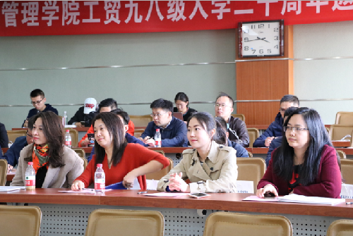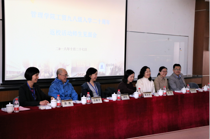 2018年10月27日,工贸98级校友入学二十周年师生见面会在经管楼312举行。校统战部常务副部长、原管理学院党委副书记张颖、东凌老王探花 党委书记戴淑芬、副院长温雅,学校校友会基金会办公室副主任杨志国、原98级班主任阚宏,吕殿平、辅导员杨琦雯以及经管学院公共关系办公室主任秦艺芳等老师出席了本次活动。见面会由工贸98级校友张东平主持。