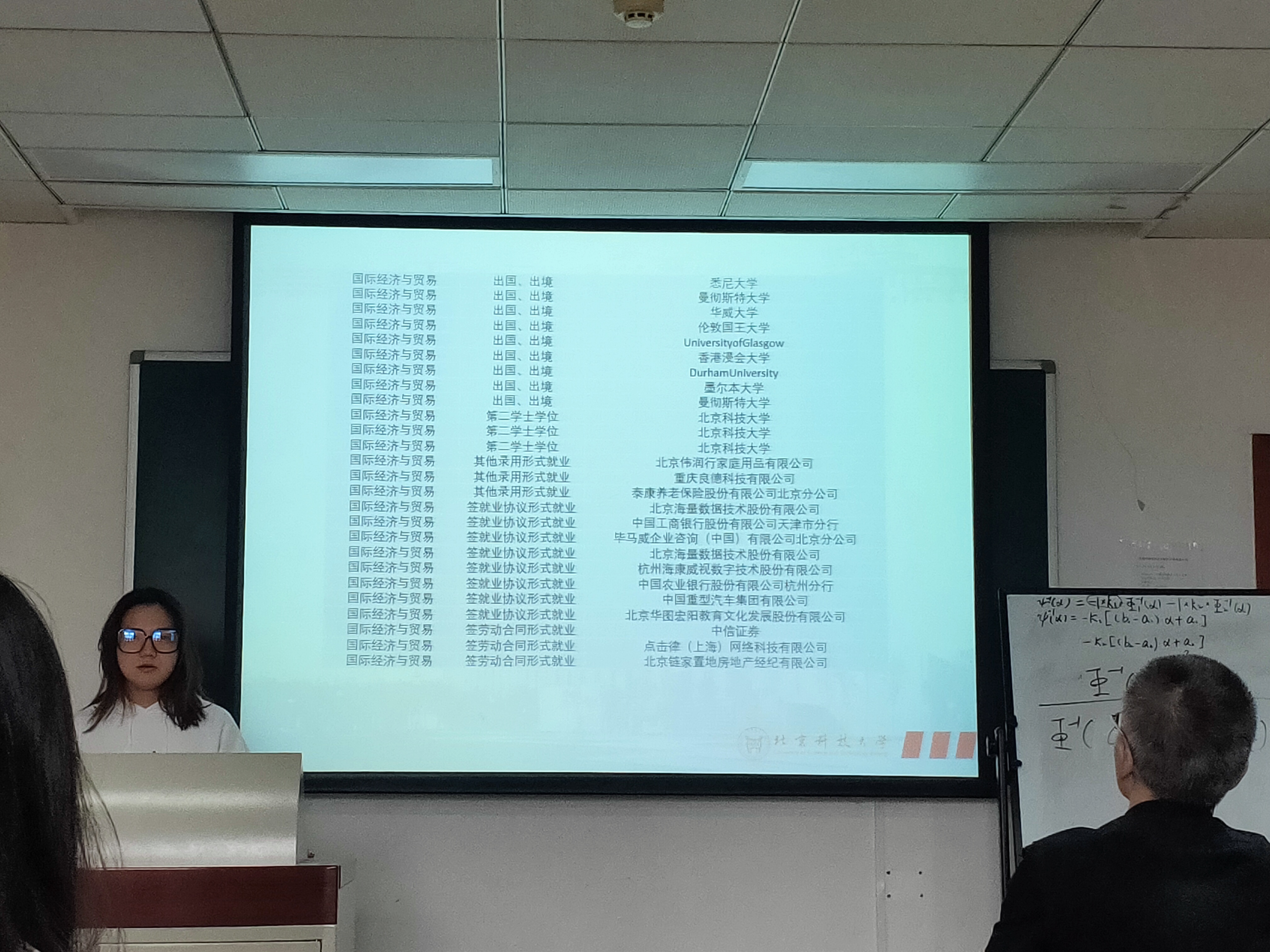 首先是辅导员戈誉阳带领大家看17级专业毕业生去向统计,在数据分析中帮助同学们自我定位与规划。其次班导师马建峰基于毕业生去向数据统计,为大家深入解析保研、考研、留学、就业各主要去向情况。