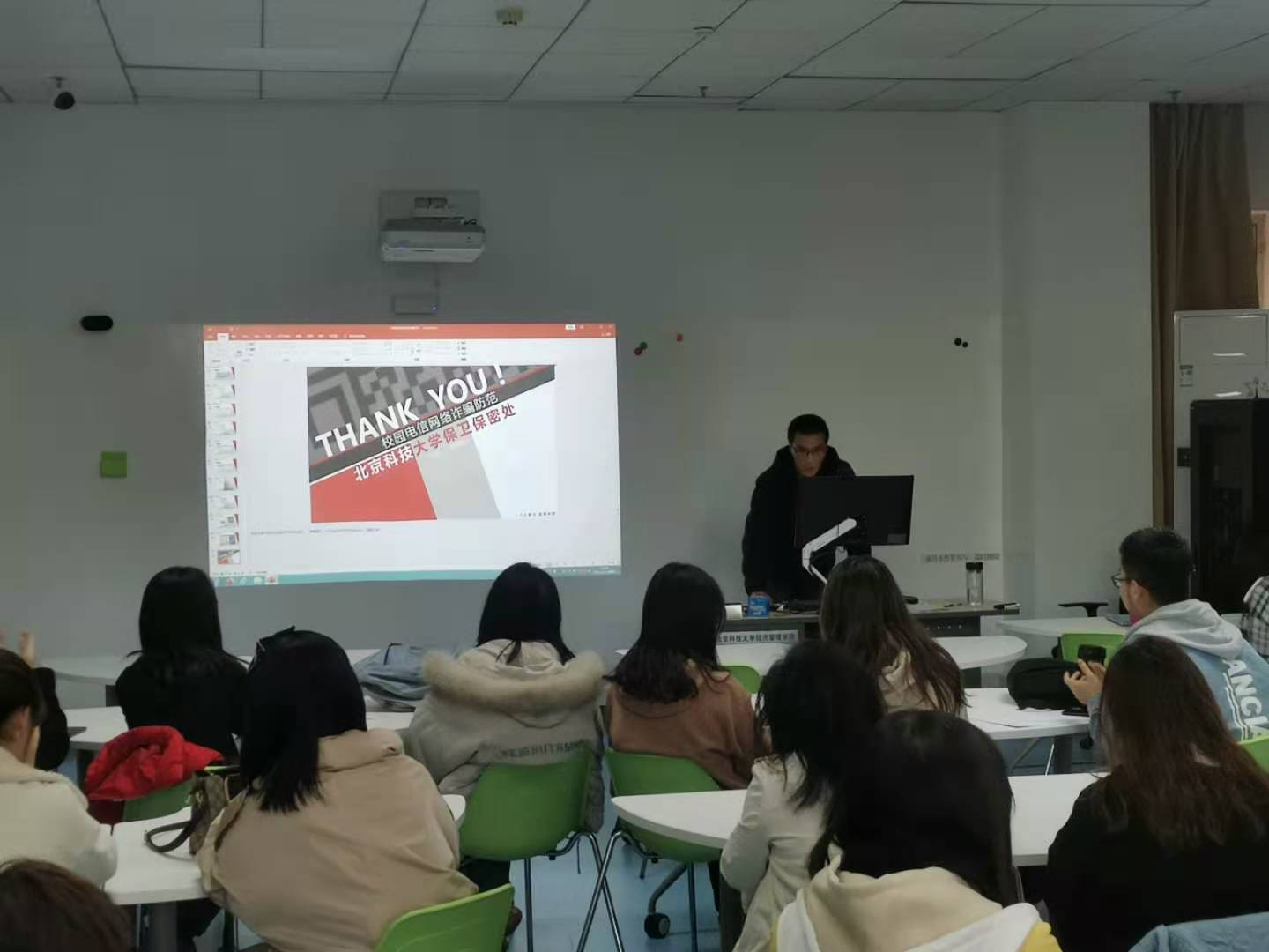 在开始主题团日活动之前,信管192班级有幸邀请到了老王探花 保卫保密处刘老师进行校园网络诈骗防范主题宣讲。首先对诈骗方式进行了宣传,主要分为点击不良链接,冒充电商客服,冒充亲朋好友进行诈骗,兼职,刷单,炒股等,并为同学们进行了事前防范方法和事后处理方法的指导,场下的同学在刘老师的讲解下,对校园网络诈骗有了更深刻的认识,对网络电信诈骗的防范能力大大提高。