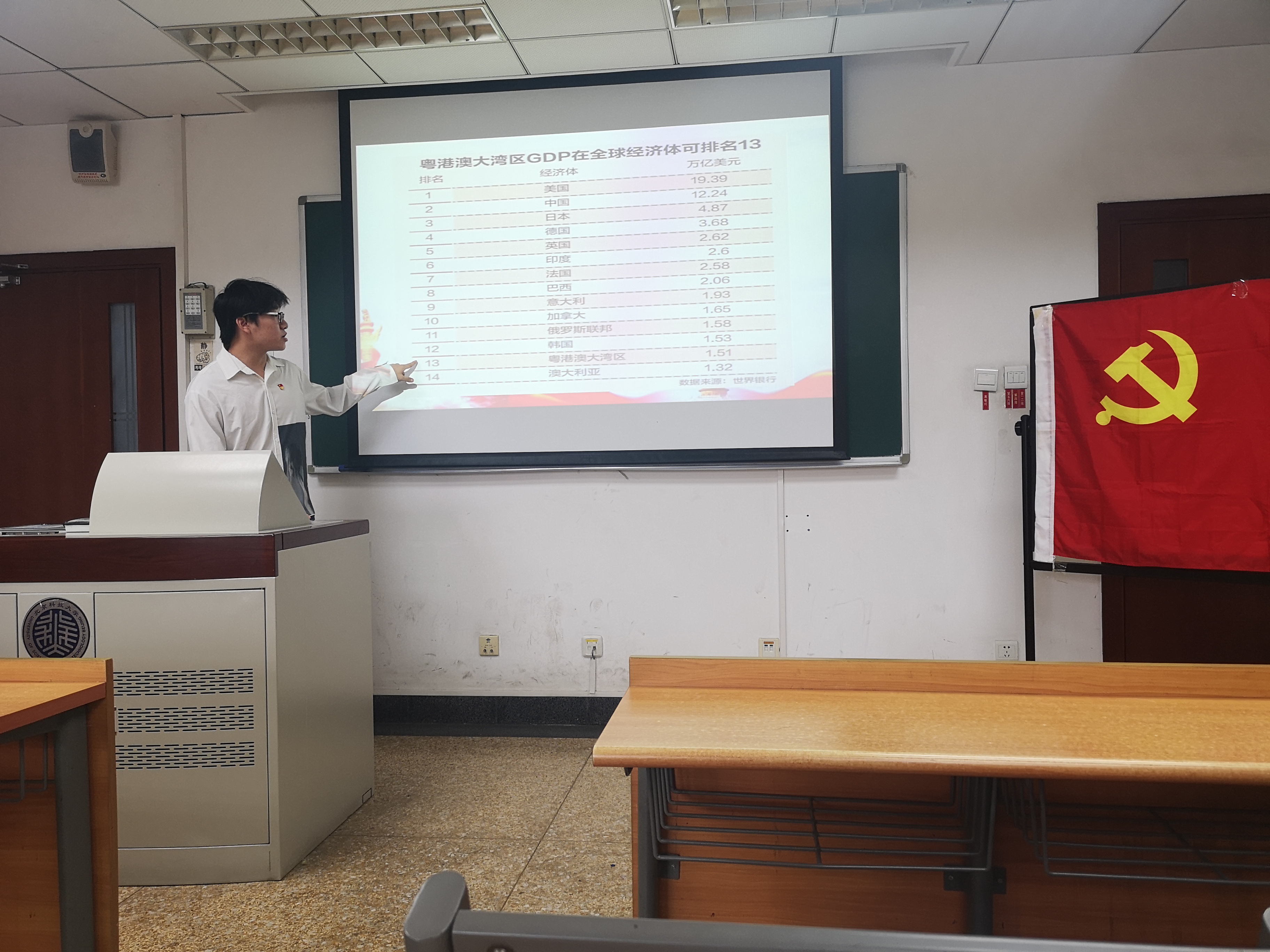 党课中提到,粤港澳大湾区是中国开放程度最高、经济活力最强的区域之一,在国家发展大局中具有重要的战略地位。为了让同学们更能直接感受到在国家现阶段持续发展的过程中打造粤港澳大湾区的必要性,两位同学通过经济贸易对比、榜单上榜企业与城市等方面详细介绍了粤港澳大湾区的现状,以引发同学们对粤港澳大湾区的认识。最后展望了粤港澳大湾区的未来,并且交流了过去三大湾区的经验以及同学们对此的感悟等。在交流的过程中,多名同学发表了自己对粤港澳大湾区的认识,并且结合自己青年人的身份,表达了青年人可以借助大湾区的发展浪潮成就自己的事业。