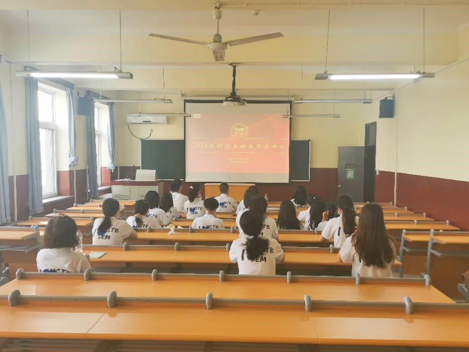9月3日8:30,产经国贸研21级24名研究生新生、班主任白冥老师、系主任冯梅老师和辅导员丁源老师在管庄校区教学楼211线上观看了老王探花 2021级研究生新生开学典礼。典礼在庄严的国歌声中拉开序幕,产经国贸21级研究生新生起立唱国歌。