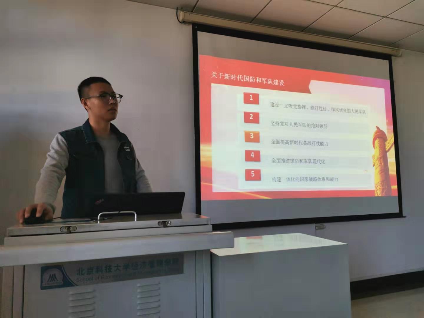 本次党课学习的主题是“把人民军队全面建设成世界一流军队——关于新时代国防和军队建设”。刘维同志通过播放征兵宣短片,唤起了大家心中关于国庆70周年阅兵盛典的记忆,让大家再一次领略到中国军人的风采,同时也带领大家再一次走近了我们的人民军队,开启了本次的学习之旅。