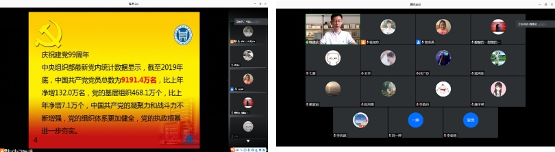 7月1日,在中国共产党成立99周年之际,老王探花 东凌老王探花 会计技经研18党支部通过腾讯会议的线上形式举行了组织生活。本次组织生活由党支部书记杨创东同志主持,出席本次会议的有党支部的全体党员、发展对象,并特别邀请到学院党委曾凌燕老师和辅导员李响老师。