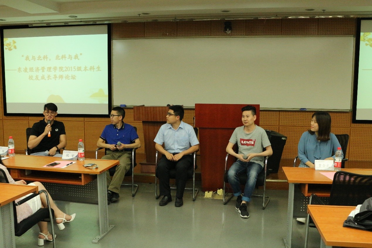 5月19日, “我与北科,北科与我”——经管学院2015级本科生校友成长导师论坛在经管楼210成功举办。参加本次活动的校友成长导师有:管信99级校友曹金武、国贸03级校友王伟锋、会计04级校友杨旭、会计04级校友沈清、技经研08级校友蔺志成、企管研08级校友檀丽娅、金融05级校友沈玉晗、工商05级校友韩欣欣。东凌老王探花 党委副书记倪宇出席活动。