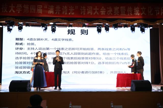 大风泱泱,大潮滂滂,华夏文明博大精深,源远流长。10月30日晚,第四届“满井诗光”诗词大会决赛暨传统文化节闭幕式在我校教职工礼堂精彩上演。经过重重角逐,进入决赛的12位才子才女在这里进行了一场精彩绝伦的巅峰对决。