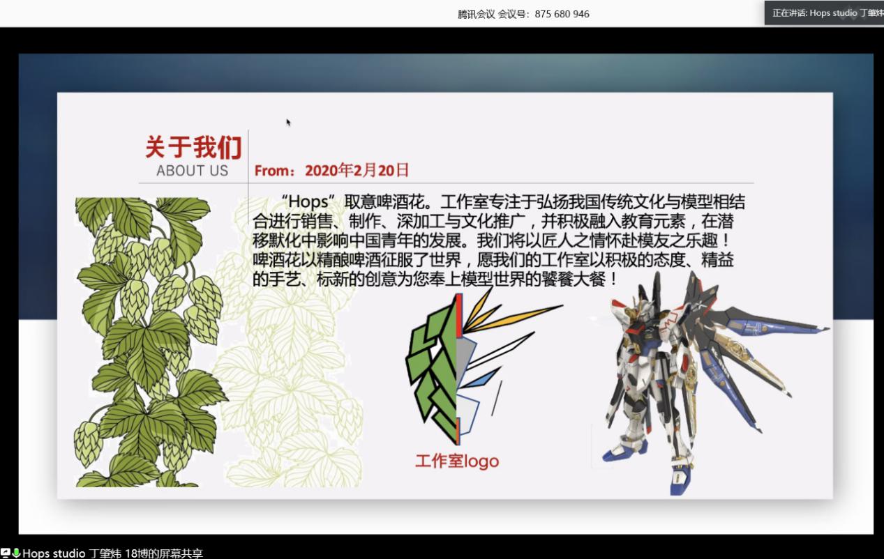 Hops studio项目通过对高达模型、传统建筑榫卯结构模型及相关车模、军模的学习与拼装,实现对机械设计美学、空间思维能力及计算机3D建模技术的普及教育,使大家敬畏自然、关注历史、手脑结合,摆脱对电玩游戏的过度依赖,致力于提升青年学生对手工艺术品的审美及中华传统文化的热爱。