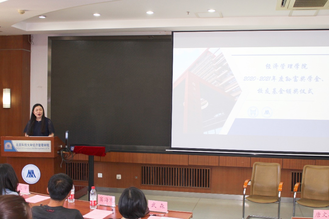 会议伊始,经管学院党委书记武森老师致辞。武森老师介绍了孙富奖学金、校友基金设立的背景、资金来源、资助对象及其设立目的,对回馈学校的校友表示由衷感谢,表达了对当代大学生成长成才、锐意进取、开拓创新的殷切期望,激励同学们在建党100年之际争做担当民族复兴大任的时代新人,积极投身于为人民服务的伟大实践中。