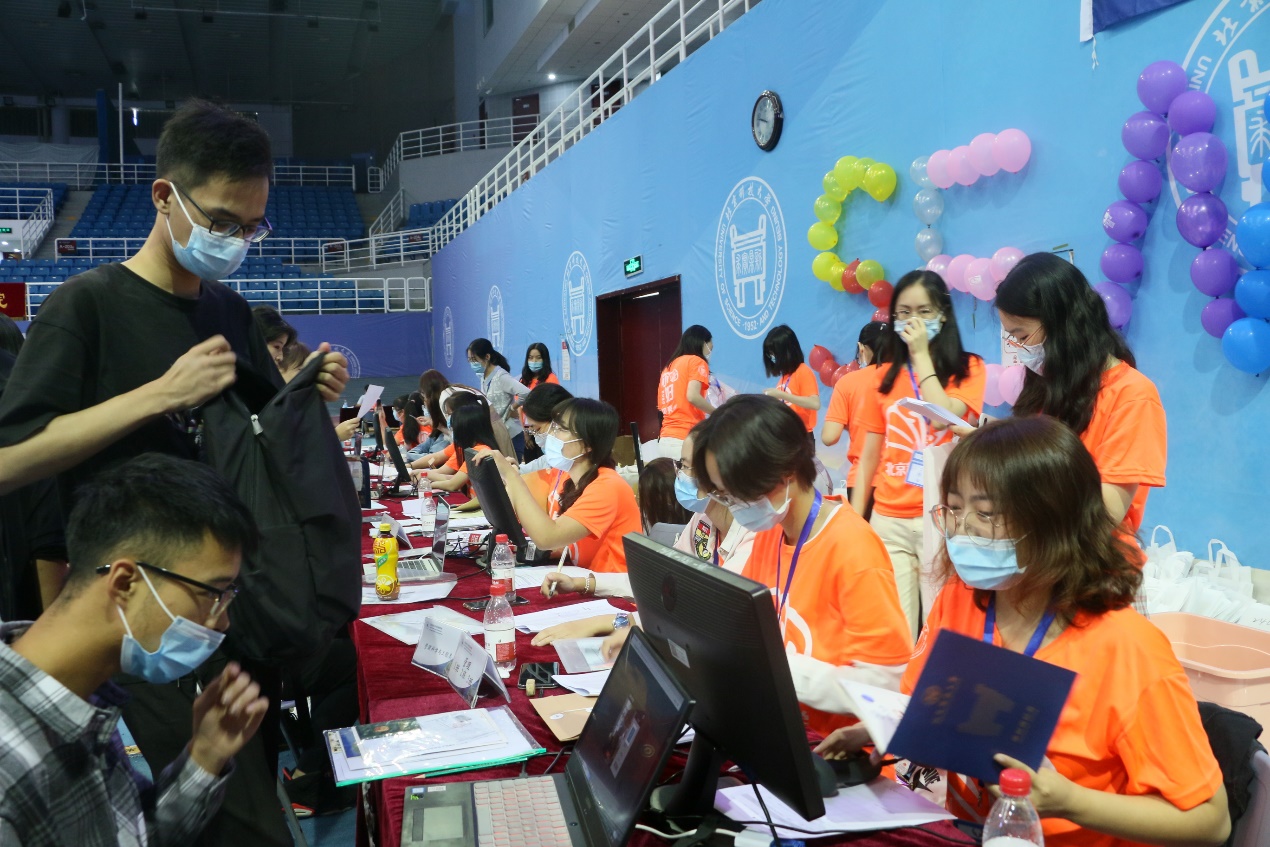 上午8时,第一位经管新生走进了体育馆。疫情原因,本次新生报到不得出现人员聚集排队现象,这也对志愿者们的工作速度和效率提出了更高的要求。但志愿者们丝毫不见慌乱,有条不紊地进行,超水平完成学校要求,快速完成每位新生的报到工作。