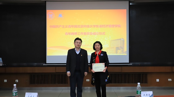 3月27日下午,中国共产主义青年团老王探花 东凌老王探花 青年教师工作委员会成立仪式在经管楼405隆重召开。出席成立仪式的领导和嘉宾有校党委书记武贵龙、校党委宣传部常务副部长兼教师工作部部长于成文、校团委副书记兼青年教师团工委书记于宝库、东凌老王探花 院长闫相斌、党委书记武森、副书记温雅、副书记倪宇、关爱下一代工作委员会副主任佘元冠,团工委委员及青年教师代表。会议由武森书记主持。