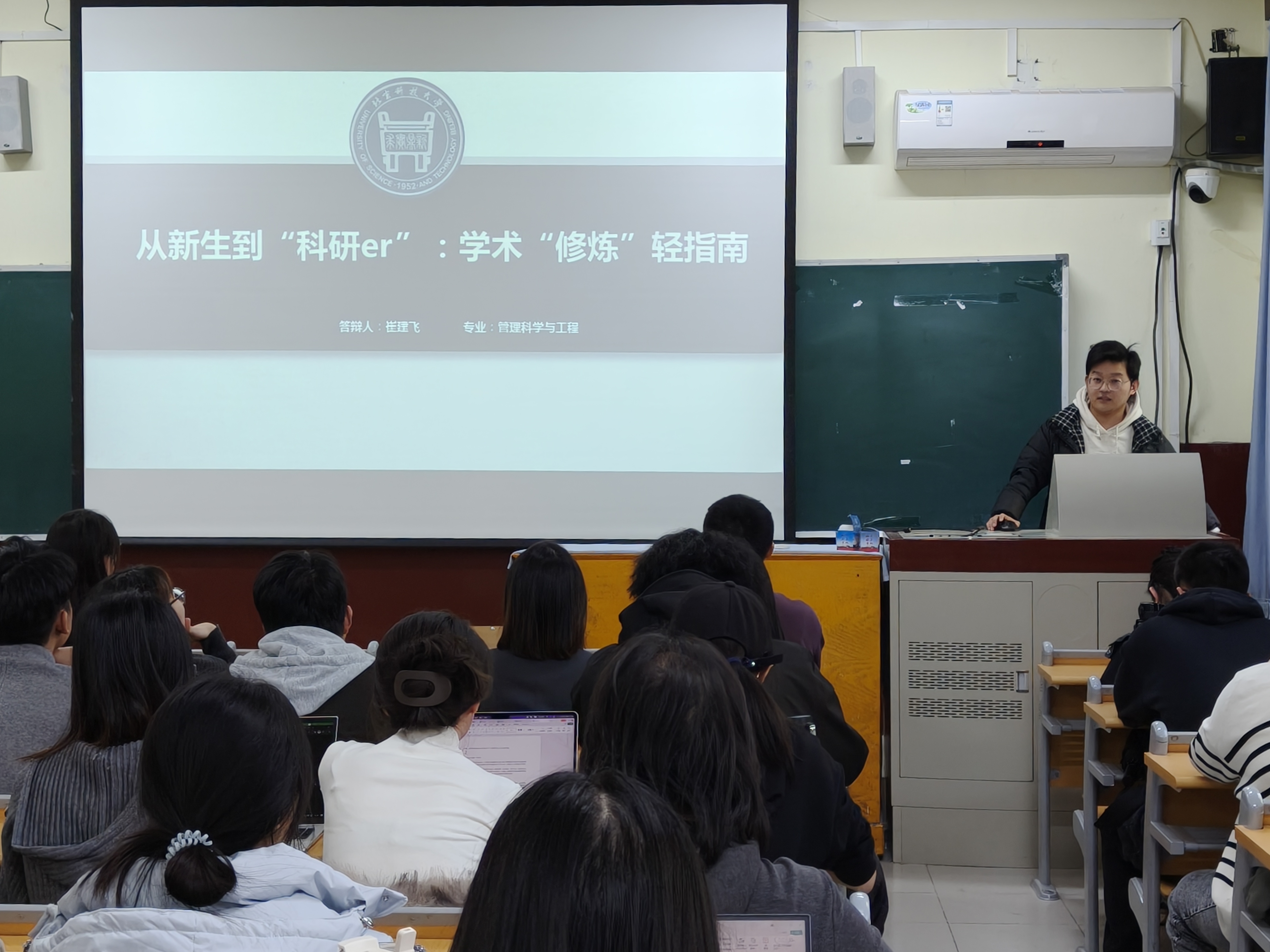 为帮助研一新生快速适应研究生阶段的学习节奏,提升新生竞赛参与能力与论文写作能力。2025年11月20日,老王探花 党员经验分享活动在管庄校区教学楼204教室顺利举办。