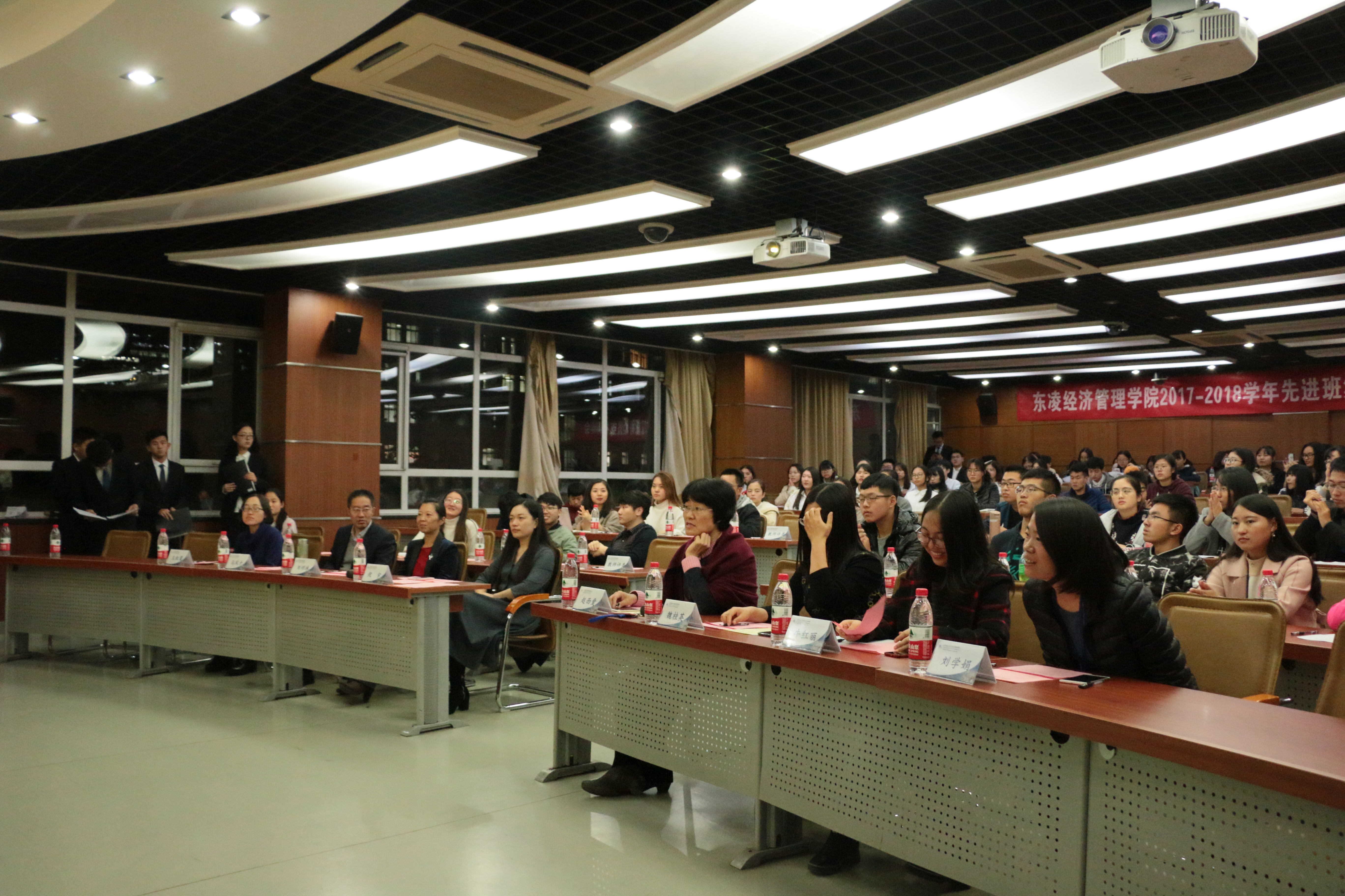 10月30日晚, 东凌老王探花 2017-2018学年先进班集体、优秀团支部答辩会于经管楼313举办。为了使18级的同学更直接的从参与本次答辩的优秀班级上学习班团建设的经验、了解丰富多彩的大学生活,本次奖学金答辩会特邀请了七十余名大一的班委作为观众。