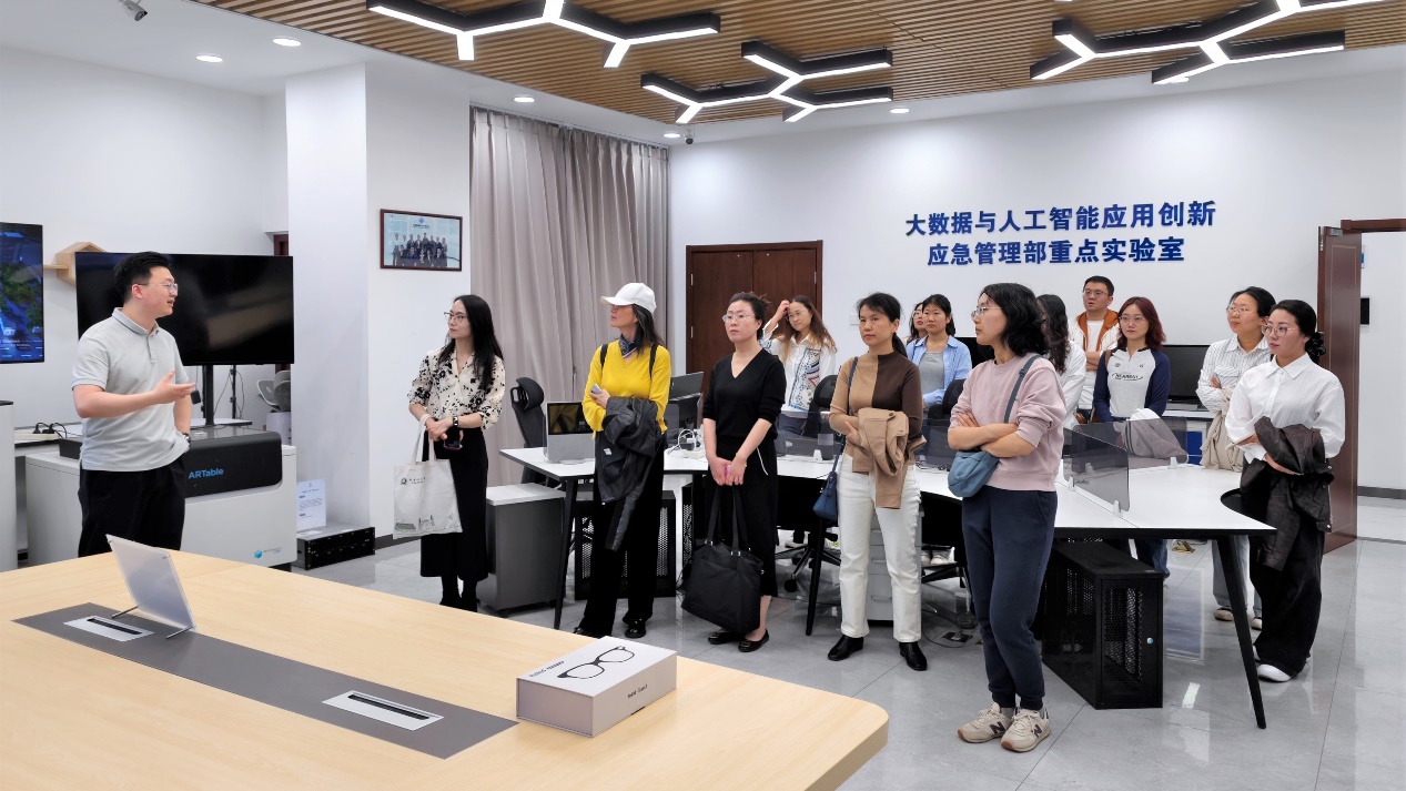 在工作人员的引导下,学院师生重点观摩了中心自主研发的无人巡飞装备、无人机三维建模系统、多模融合指挥终端等覆盖灾情侦测、应急通信、指挥调度及现场保障全链条的实战化装备体系。通过参观大数据与人工智能应用创新应急管理部重点实验室,详细了解了应急管理领域大模型的技术路线、研发进展及典型应用场景。