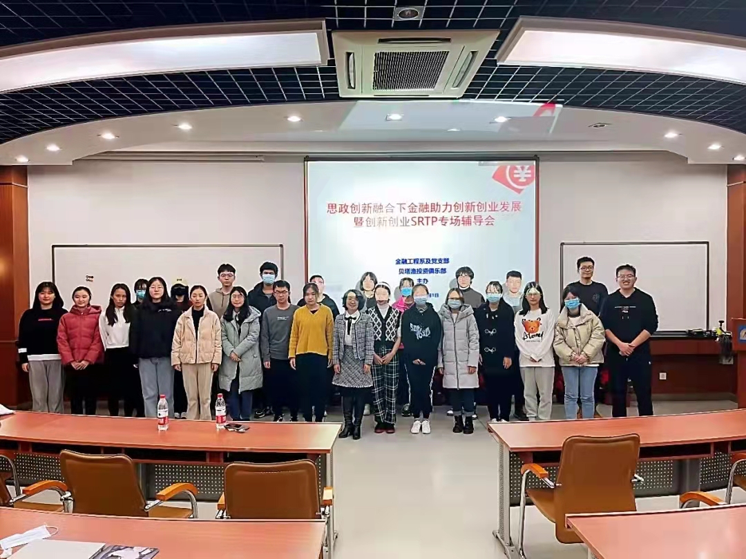 金融工程系及党支部主办、MBA贝塔渔投资俱乐部协办的“思政创新融合下金融助力创新创业发展暨创新创业SRTP专场活动”在经管楼313教室成功举办,金融工程系主任兼书记、MBA贝塔渔投资俱乐部首席专家王未卿老师作了“思创、专创双融合实践——新经济新金融下金融助力全球创新创业发展”主题演讲,孟子居创业团队创始人杨国庆学长结合亲身实践经历作了“创新创业中的思政培训与实践融合”主题演讲,为思政创新融合背景下同学们开展创新创业活动带来了启发和借鉴经验。