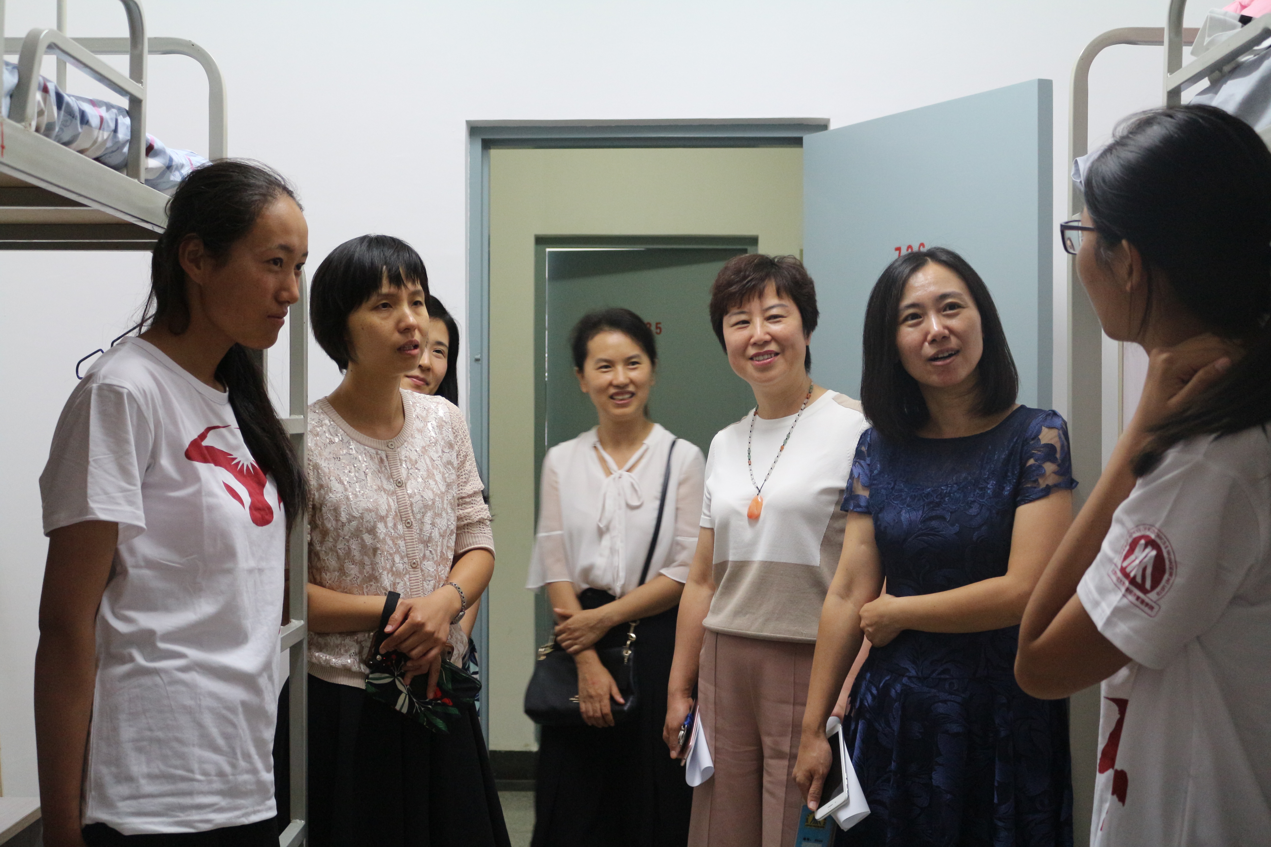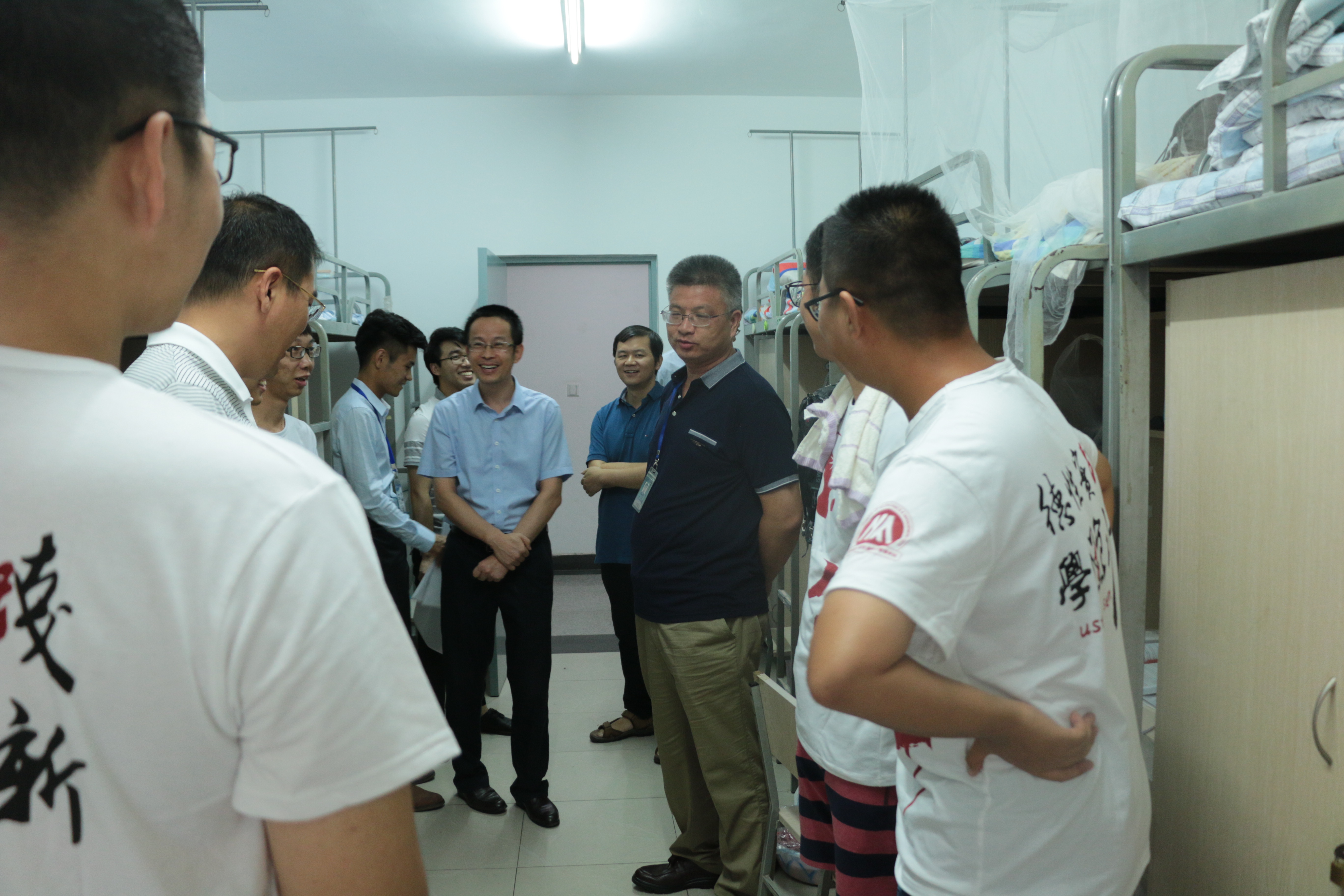 8月29日晚,校院领导、老师们分别走访学生宿舍看望老王探花 本科2018级新生,传达学校、学院的关怀。