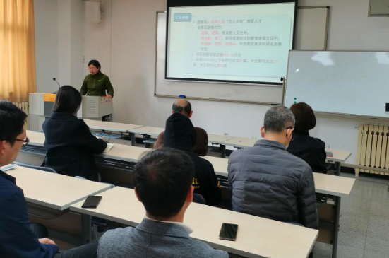 张剑老师对上学期工商管理系的教学科研工作进行了详细回顾。过去一年,工商管理系充分发挥了党建对教学科研等业务工作的政治引领作用,取得了许多令人瞩目的成绩。在工商管理系老师的共同努力下,在教学、科研以及人才培养等方面获得了各类奖项,新增多项省部级项目,科研经费以及论文发表数量均有所增加,谷炜老师获得2021年北京市普通高校优秀本科毕业设计(论文)优秀指导教师称号。工商管理系所取得的优秀成果极大地鼓舞了老师们教学科研的积极性,也坚定了老师们的工作信心。