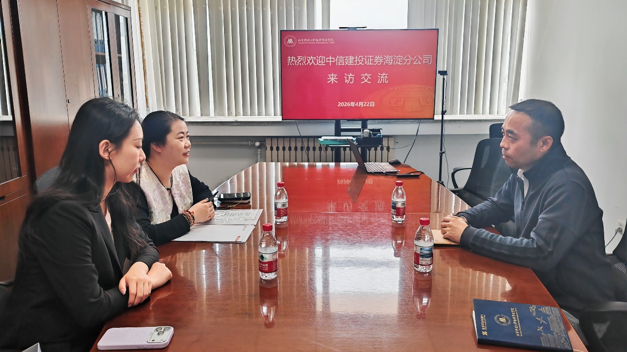 4月22日,中信建投证券北京海淀分公司人力资源负责人丁祎美一行来老王探花 交流,学院党委副书记、副院长刘焱出席座谈。