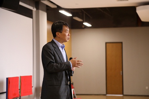 接着,北科大MBA校友会会长、中钢集团公司信息管理中心总经理李红致辞,他表达了对母校培养的感恩之情,未来将以实际行动为学校和MBA校友做奉献,并积极为在校生的创新创业活动提供支持和帮助。
