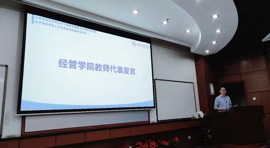 学院金融工程系教师杨志明作为此次人才培育项目的培训教师和所培训课程班级的班主任,代表项目教师进行了发言,他号召学员们能够努力学习期货知识,融入到金融、期货行业当中来,为期货行业发展贡献自己的力量,同时希望同学们能有所收获,不辜负各单位的用心筹备。