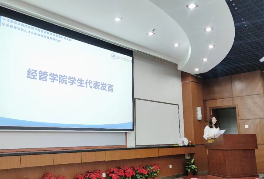 学院金融专业大三年级学生郭洋,作为此次课程学员代表进行了发言,她表示希望在各位老师、专家学者的带领下,不断扩充期货、金融相关知识储备,努力成长为未来金融行业的后备人才。