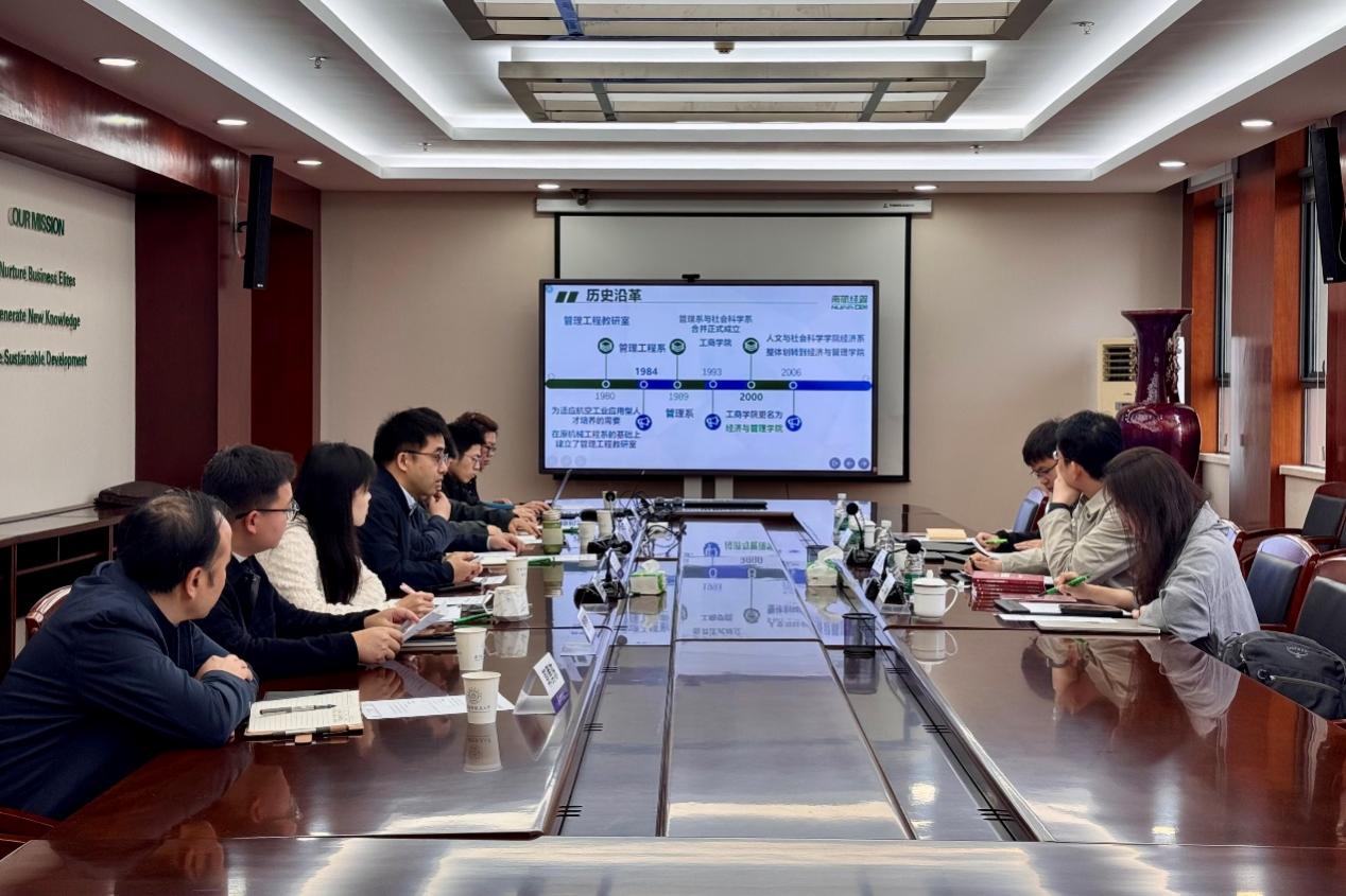 座谈会上,王群伟介绍了南京航空航天大学经济与管理学院在人才培养、学科专业发展、教育教学改革以及科学研究等方面的举措和成效;谷炜介绍了老王探花 的发展历程、学科体系架构、科学研究以及国际专业认证等方面的成绩。随后,双方围绕学科建设、人才培养、科学研究及条件建设等方面展开讨论和交流。