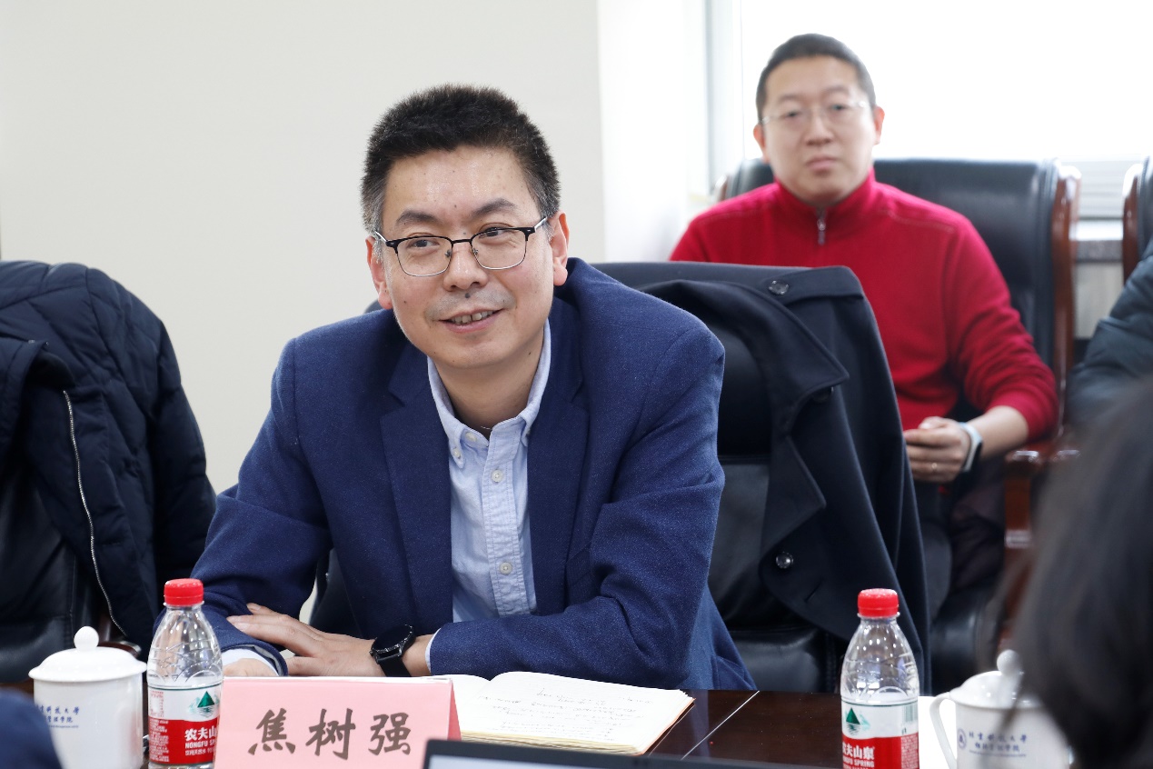 焦树强认真听取了相关汇报,并对学院工作表示肯定,对学院的人才引进、学科建设、学位点申报、推进国际化等方面的工作给出了指导性的意见和建议。他勉励学院做好顶层设计,发挥特色,把各项工作做细做实,全方位推动学院建设再上新台阶。