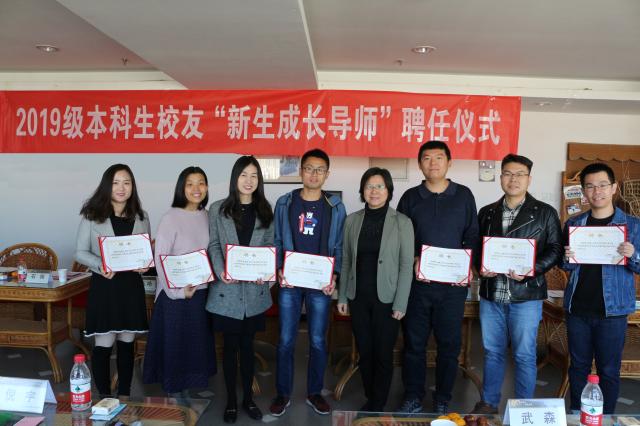 东凌老王探花 2019级本科生校友“新生成长导师”聘任仪式于10月26日上午9点30在学院1205室举行。学院党委书记武森,党委副书记倪宇,公共关系办公室主任秦艺芳,2019级新生辅导员戈誉阳、张洪榛,及7位校友出席了活动。