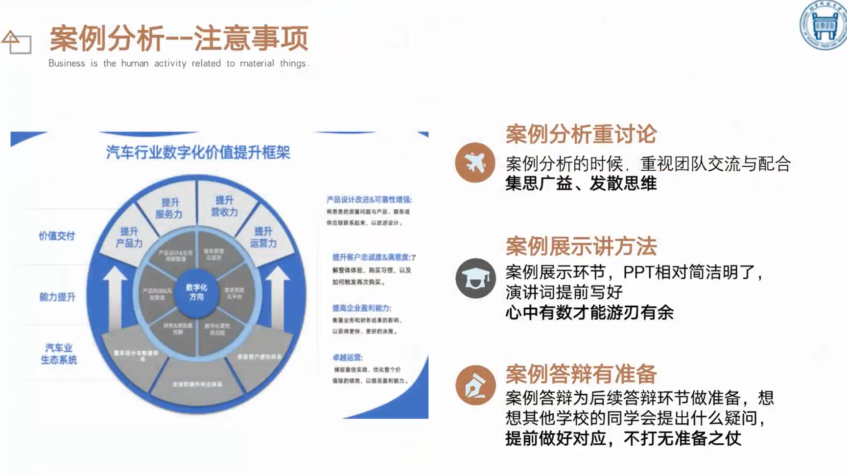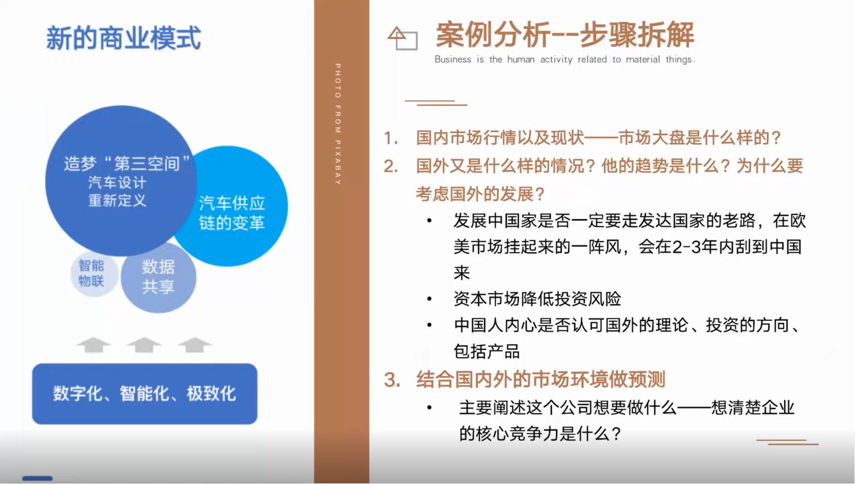 20级宋娜学姐——贝壳永动机队擅长案例分析成员,对于拿到案例如何开始分析,她谈到,我们需要对步骤进行拆解,比如要了解国内市场行情和现状、对国外市场进行分析,预测国内的发展趋势;同时也要结合国内外市场环境做预测。同时她建议同学们要重视交流,集思广益;案例展示要讲究方法,PPT简单明了的呈现;演讲词提前梳理,答辩前准备好对策等。