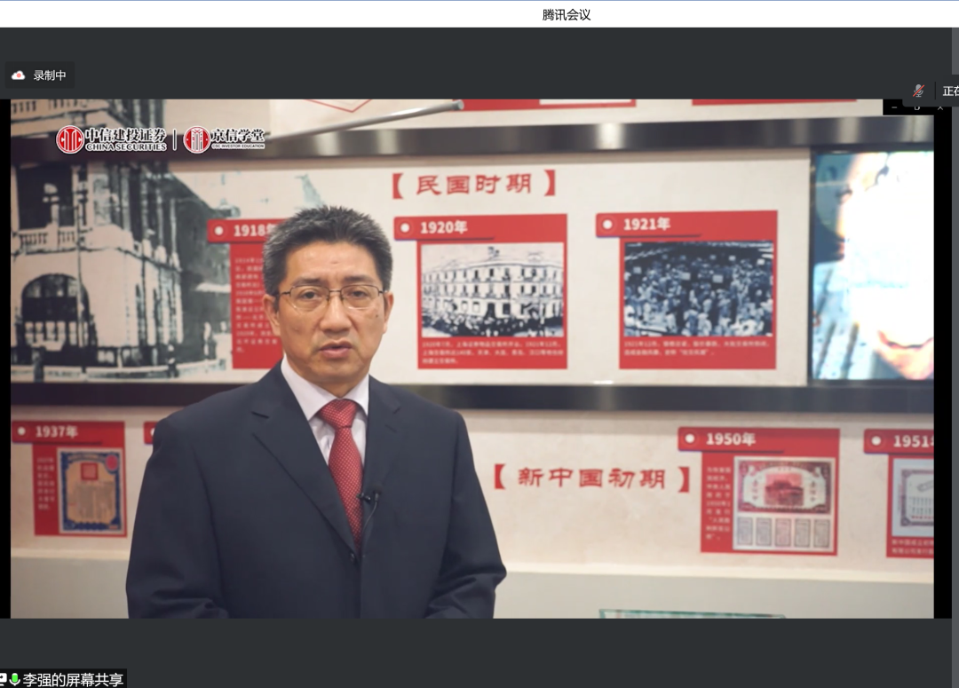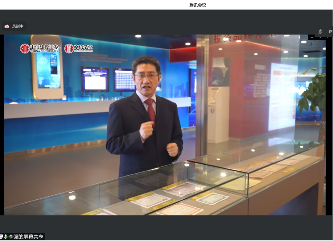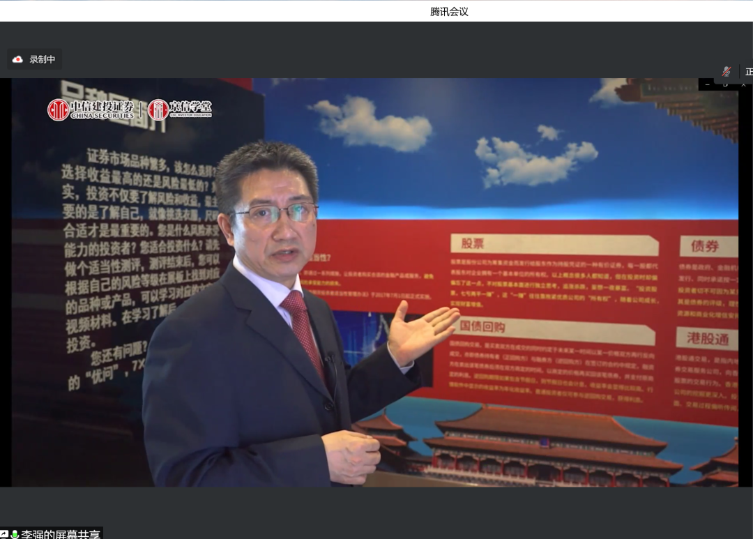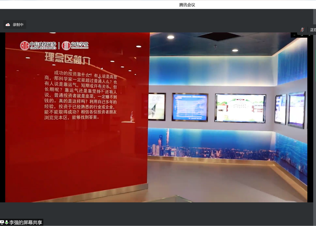 王未卿老师介绍金融工程专业基本情况,阐明金融工程专业认识实习参观重要意义。杨志明老师介绍认识实习参观内容,以及主讲教师情况。中信建投属于头部券商,中信建投投教基地一直以树立理性观念,加强投资保护为己任,开展各类型活动。投教基地坐落在北京市朝阳区安立路上,是北京地区唯一一个国家级(实体)投教基地。投教基地包括历史展示区、产品展示区等,内容丰富多样、有趣十足。本次投教基地线上参观包括两部分内容:第一部分关于投教基地介绍;第二部分关于公司业务介绍。李强总首先带领师生参观投资者教育基地,详细介绍证券起源和发展,并介绍参观各类展区。