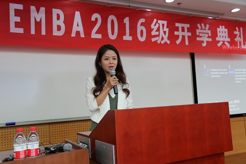 此次开学典礼以一种简约的形式展开,在全体起立奏唱国歌之后,何枫教授发表了热情洋溢的讲话,他全面介绍了北科大经管学院的特色和优势,着重阐明了学院对于EMBA教育项目的重视,并结合学院未来的四个发展目标对在座的新学员提出了学知识、拓视野、交朋友、炼身体四点期望和要求。接下来,2015级学员代表李懿同学的发言轻松诙谐,使新学员倍感亲切。作为新学员代表,来自中信银行的刘芳同学表达了对于新的学习生活的向往和自我成长的愿望。最后,范小华主任向在座的新学员介绍了北科大EMBA教育中心的全体老师和他们各自负责的工作领域。