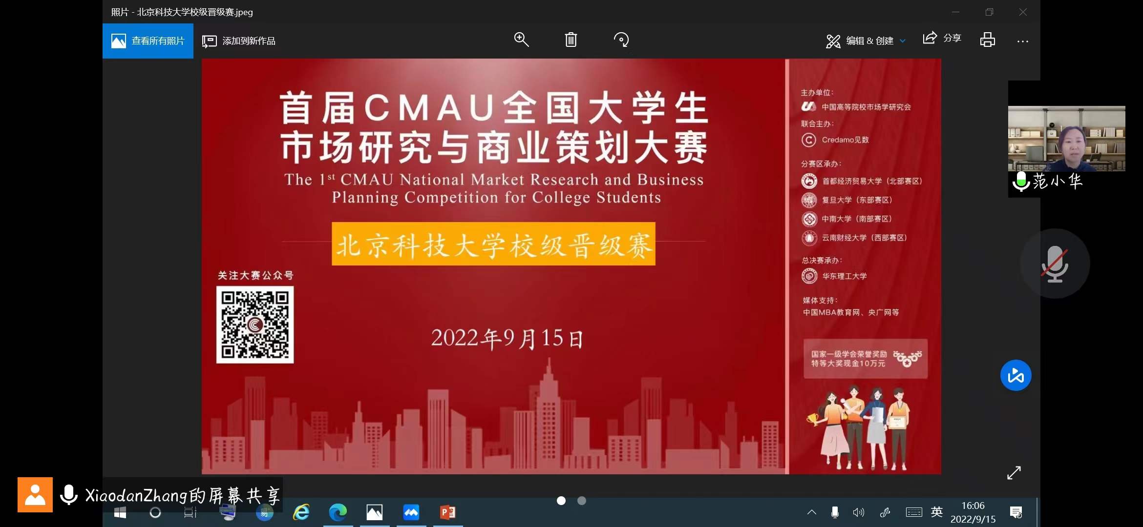 9月15日,由中国高校市场学研究会(CMAU)和Credamo见数科技公司主办,老王探花 工商管理系承办的首届CMAU全国大学生市场研究与商业策划大赛老王探花 校级选拔赛举行。本次比赛以线上线下相结合的形式进行,老王探花 副院长范小华和工商管理系主任张剑出席本次活动并致辞发言。工商管理系老师胡玲、苏玲、姚卿、邹鹏担任评委,张晓丹老师主持。