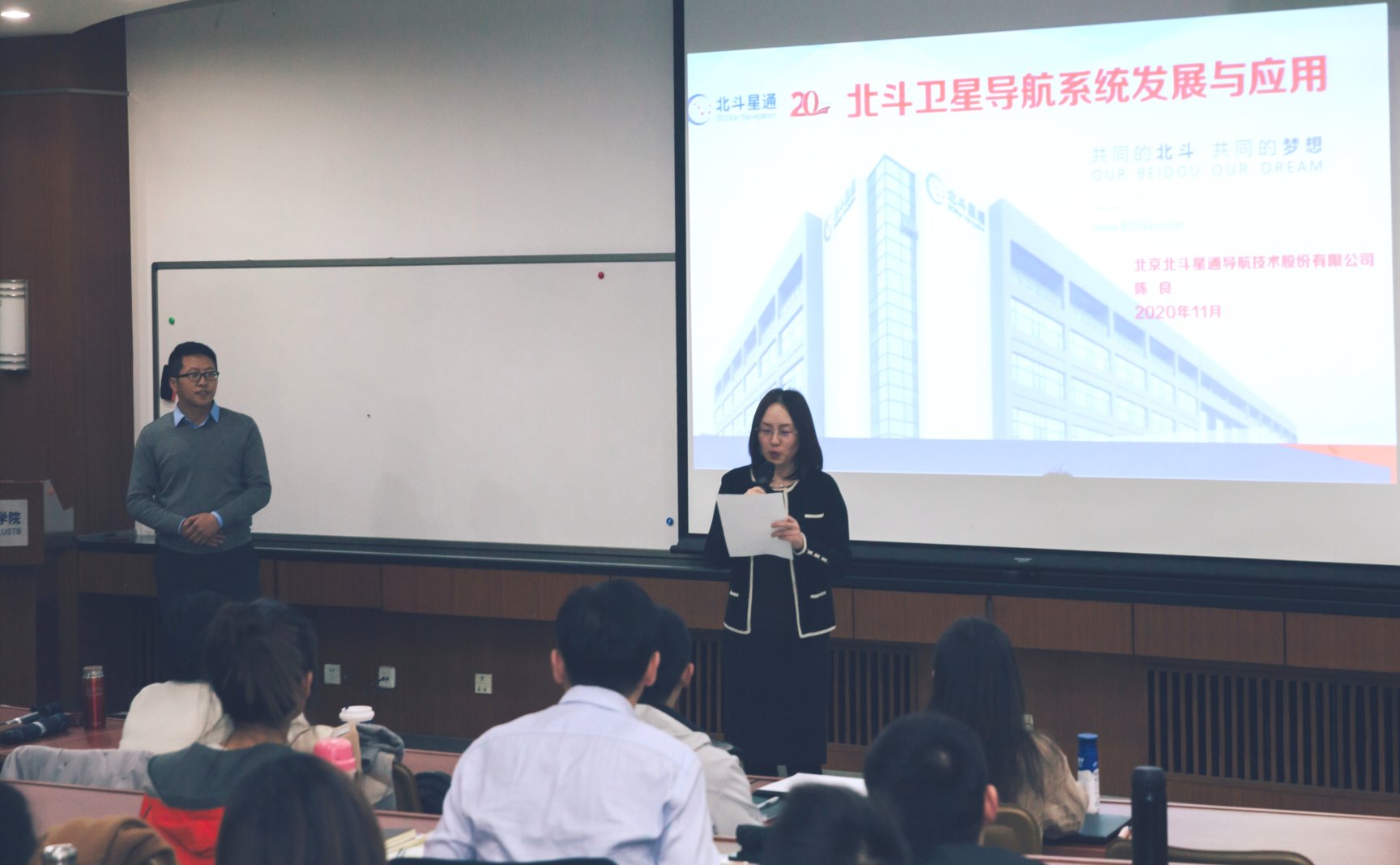 在本次的讲座中,陈良博士以“北斗卫星导航系统发展与应用”为主题,从卫星导航系统的科普开题,循序渐进地为在场师生回顾了北斗系统的发展之路,最后落脚于北斗的应用发展展望。