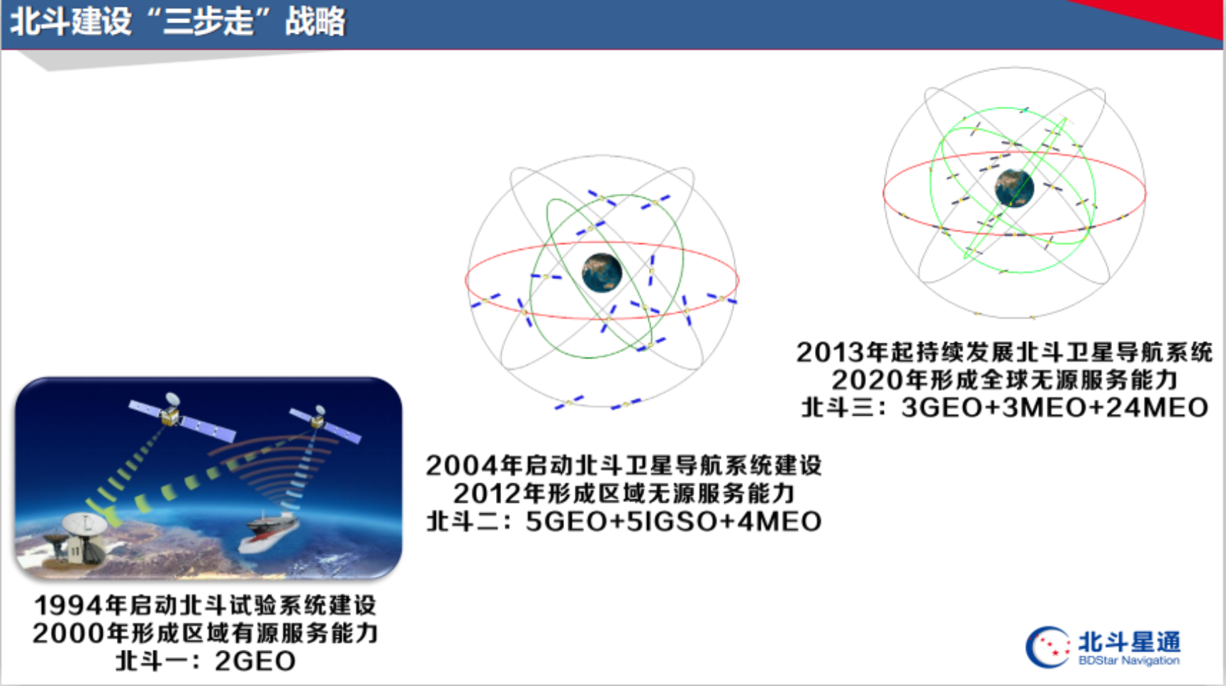 在回顾北斗系统的发展历程中,陈博士主要讲述了北斗建设的“三步走”战略:北斗一号基于双星定位原理,即用两颗卫星就可实现最基本的定位功能,北斗一号的建成使我国成为继美、俄后第三个拥有自主卫星导航系统的国家;北斗二号14星的建成实现了亚太区域的覆盖,北斗在此阶段被联合国确定为全球卫星导航系统的四大核心供应商;北斗三号定位于全球系统,2018年12月北斗三号完成了基本系统建设,服务于“一带一路”,2020年6月北斗三号完成了星座部署。