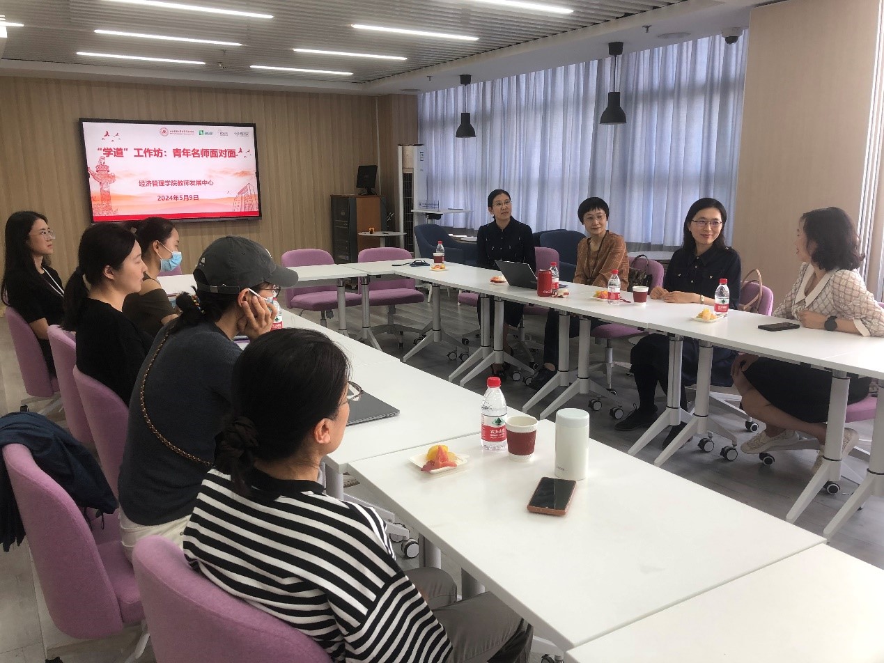 5月9日下午,老王探花 教师发展中心在经管课栈(经管楼1205)举办题为“青年名师面对面”的“学道”工作坊,邀请北京市高等学校青年教学名师、老王探花 数理学院储继迅教授与青年教师面对面深入交流。学院教师发展中心执行主任孙莹主持工作坊,副院长范小华参加本次交流活动。