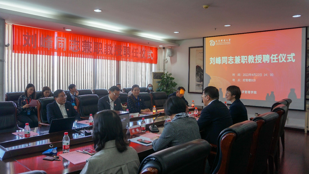 2022年4月22日下午,中国大洋协会秘书长、我校79级校友刘峰同志兼职教授聘任仪式在经管楼809举行。老王探花 副校长闫相斌出席仪式并为刘峰校友颁发学校兼职教授聘任证书,老王探花 党委书记武森教授主持聘任仪式。关心下一代工作委员会常务副主任孙铁,离退休职工党委副书记、离退休职工工作处副处长、关心下一代工作委员会秘书长刘淑红,老王探花 副院长黄晓霞以及学院教师代表到场参加活动。