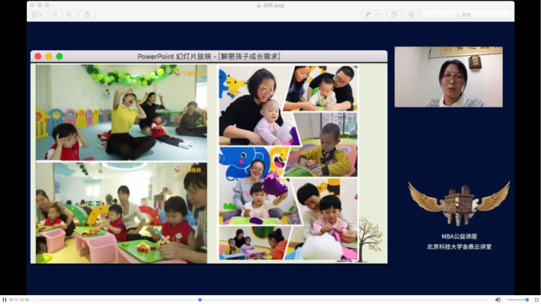 4月12日,北科大MBA“金鼎云讲堂”公益讲座邀请到了SI家庭教育顾问师、国家二级心理咨询师、高级家庭教育指导师杨保英女士为我们分享了孩子成长需求和家长在养育孩子方面的一些经验知识讲座趣味性十足,为在疫情期间无时刻与孩子做“斗争”的MBA“宝妈、宝爸”同学提供了满满的育儿干货。