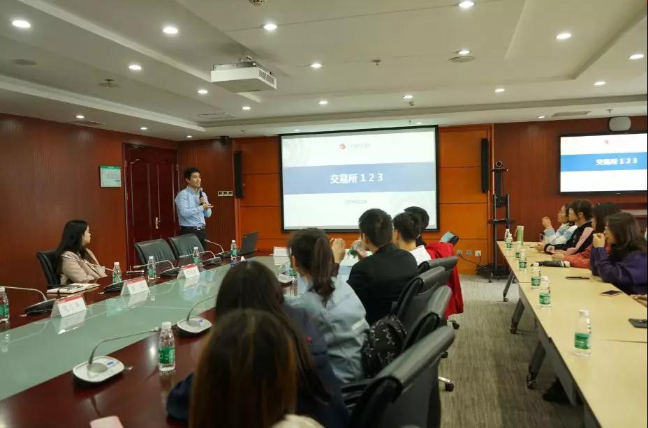 首先,张立经理和大连商品交易所工作人员带领北科大师生参观了大商所,介绍了大商所的基本情况、大商所的主要交易产品,并重点用实例介绍了这两年来在扶贫和农业方面的“期货+保险”产品。
