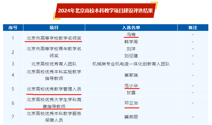 在2024年北京高校本科教学项目建设评选工作中,老王探花 喜获三项本科教学奖。其中,冯梅教授获评“北京市高等学校教学名师奖”,邓立治副教授获评“北京高校优秀大学生学科竞赛指导教师”,范小华副院长获评“北京高校优秀教学管理人员”。