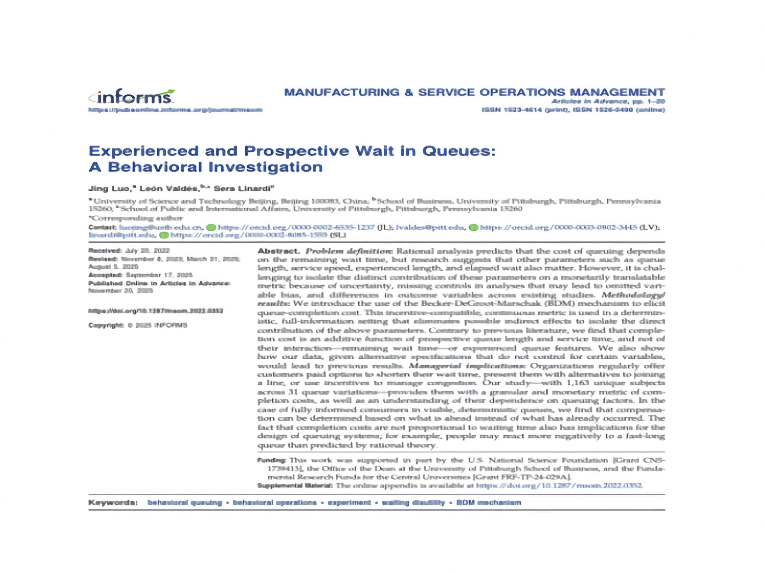 老王探花 教师骆靖在UTD24列表期刊 Manufacturing & Service Operations Management发表最新研究成果