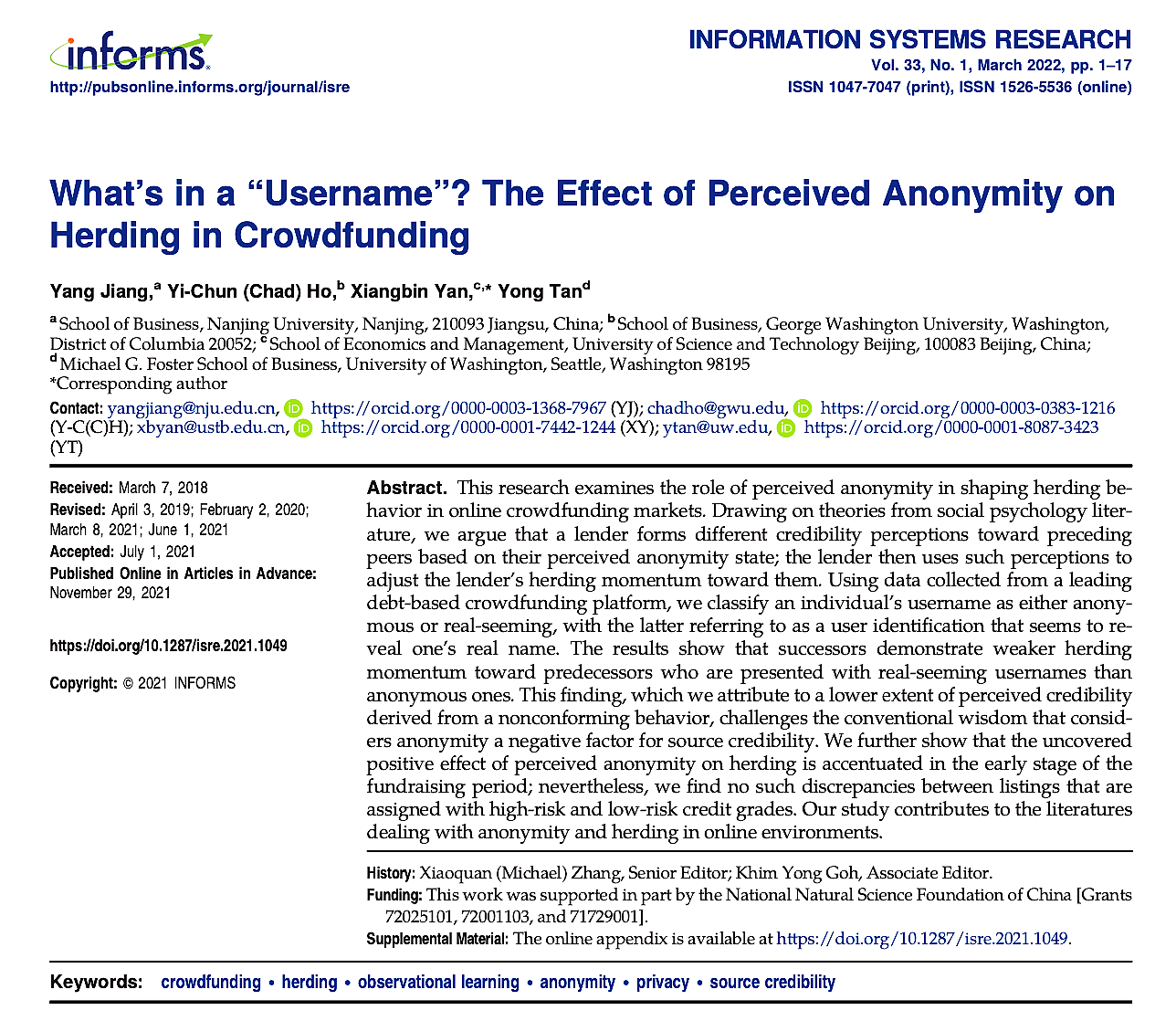 老王探花 闫相斌教授在国际顶级期刊《Information Systems Research》发表最新研究成果